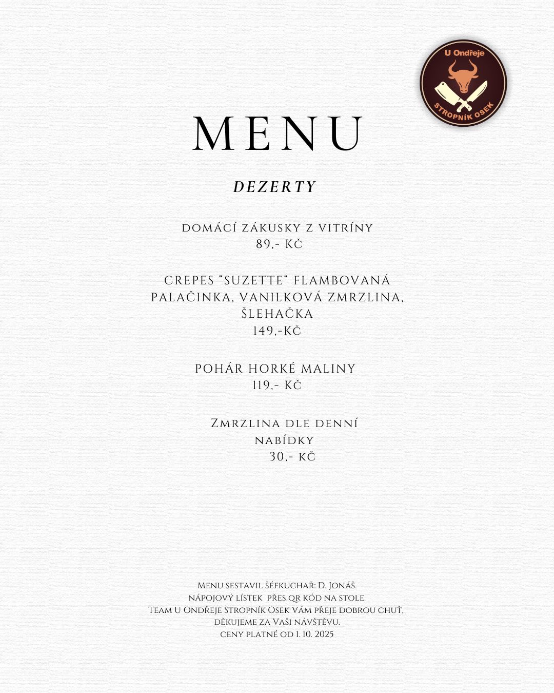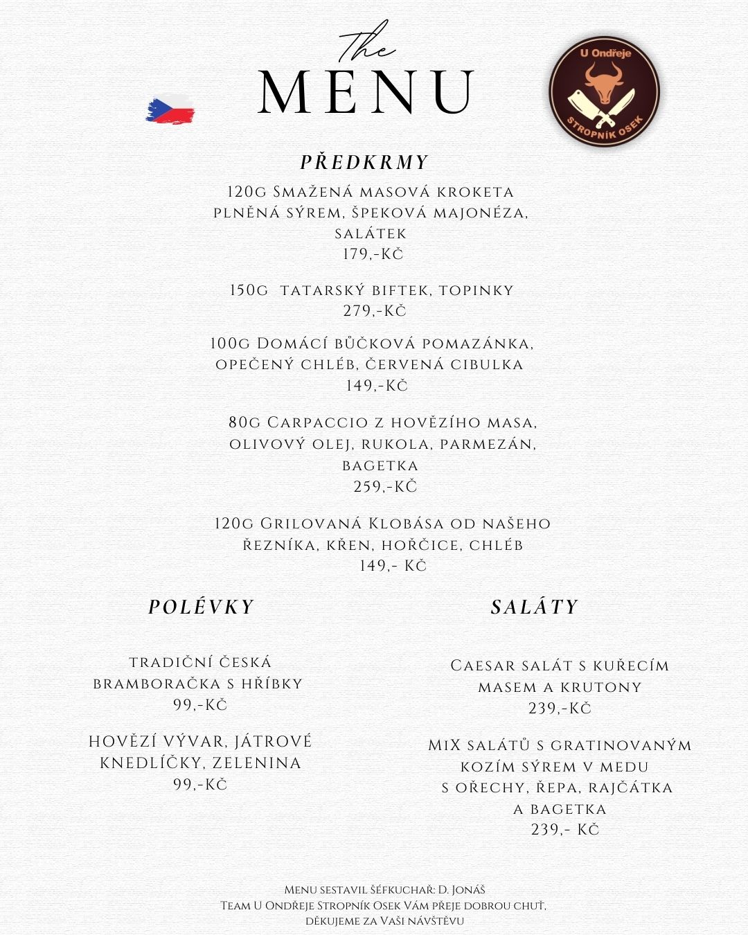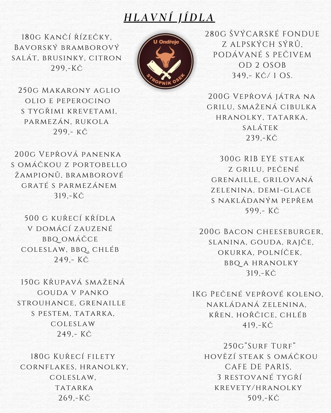 Pokud chcete strávit příjemný den s rodinou či přáteli a vychutnat si naše domácí české speciality, navštivte právě naši restauraci a přesvědčte se sami. Vítejte v restauraci „U Ondřeje Stropník Osek“. Dbáme na výběr surovin při přípravě jídel, snažíme se o to, aby skladba jídla byla pestrá a vyvážená. Používáme převážně sezónní suroviny od místních dodavatelů a Vaše jídlo je vždy čerstvé a chutné. Využít můžete i našeho venkovního posezení.